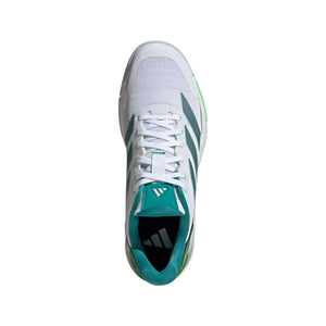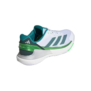 The upper construction features premium synthetic materials in a striking White/Aurora Ivy colourway that commands attention on any Padel court. The breathable upper design incorporates strategic ventilation zones that promote airflow, ensuring optimal comfort during intense rallies. Reinforced overlays in high-stress areas provide enhanced durability without compromising the shoe's lightweight characteristics.