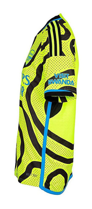 Introducing Arsenal FC's sleek and stylish 23/24 away stadium replica kit. Embrace the spirit of the Gunners with this modern design, combining a bold, dark color palette with eye-catching accents. Crafted from high-performance materials, this kit offers maximum comfort and breathability on and off the pitch. Show your unwavering support for the team and stand out in style wherever you go. Unite with Arsenal as they take on new challenges and conquer the football world in this iconic away kit.