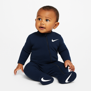 The iconic Nike Swoosh adds a sporty edge, while the footed design and full-zip front make changes a breeze. Whether it’s tummy time or nap time, your baby will stay snug and stylish every step of the way.