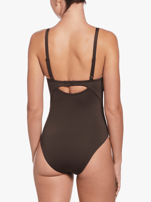 Nike Women's Essential V-Neck Brown One-Piece Swimsuit for Comfort