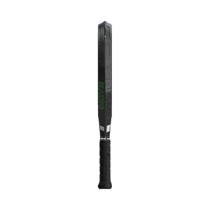 In addition this racket boasts a patented Prisma Frame made from 12K carbon fiber in a rhomboid shape and manufactured in a prism shape which has been tested in a wind tunnel and has resulted in a further 10% less wind resistance in comparison the a hexagon shaped frame. This allows for high speed through the ball and increased control.
