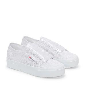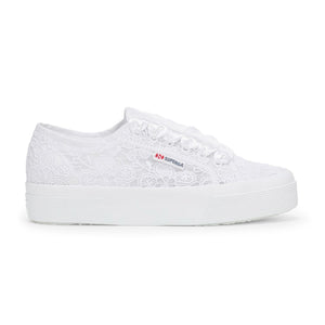 Superga  2740 is the contemporary Platform that stays true to the design of our most  iconic style. With its flower design macramé upper and its dainty silhouette, it  is the perfect sneaker to elevate the most romantic everyday looks and celebrate  special moments such as ceremonies and weddings. The jacquard logo label and the  3,5 cm flatform add a distinctive finishing touch.
