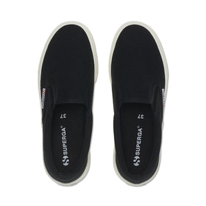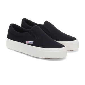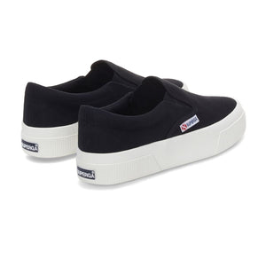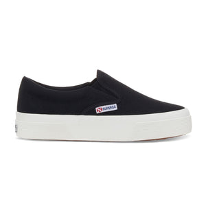 Superga 2740 is the contemporary Platform gifted with a comfy and practical fit thanks to the slip-on design. With its 3.5 centimeters sole and its dainty silhouette, this sneaker can elevate every casual daily look. The cotton canvas upper provided with side elastic bands and the two-tone jacquard logo confirm the stylistic codes of the brand.