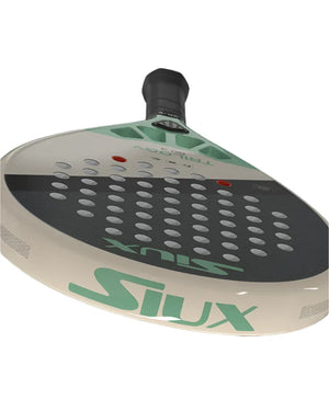 Shaped specifically for the lady that is looking for the ultimate in control over the Padel Ball, The Trilogy Go 4 W is a go to for most players looking for a lightweight package that provides precision and accuracy. Constructed with a 3K carbon fiber face giving you a great touch in your shots and a refreshing level of comfort. This has then been paired with the smooth feeling sift EVA core that we have come to love from Siux, allowing us the levels of confidence we need when playing more challenging shots during our game. The core is then surrounded by a unique frame structure that is made from a 50% fiberglass and 50% carbon fiber blend. This allows for the rigidity needed to support this overall control platform while also allowing the correct amount of flex for great feel and added power.